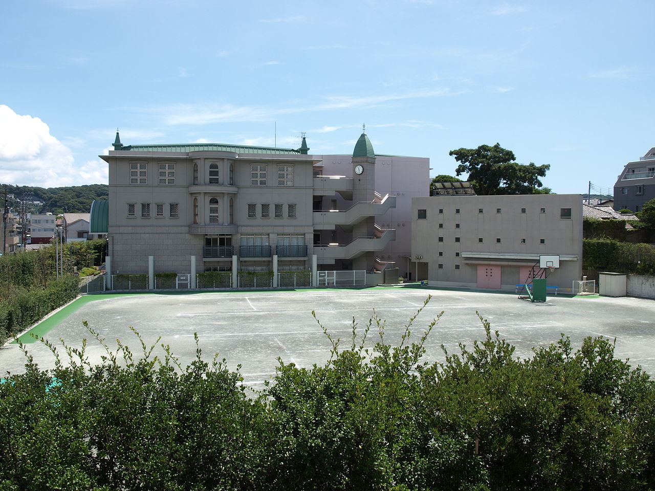 ・運動場3面、講堂兼体育館、武道館、屋外プール、全天候型グラウンドなどが揃う。